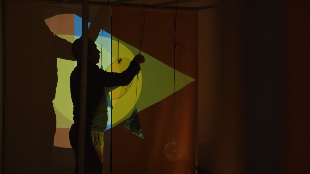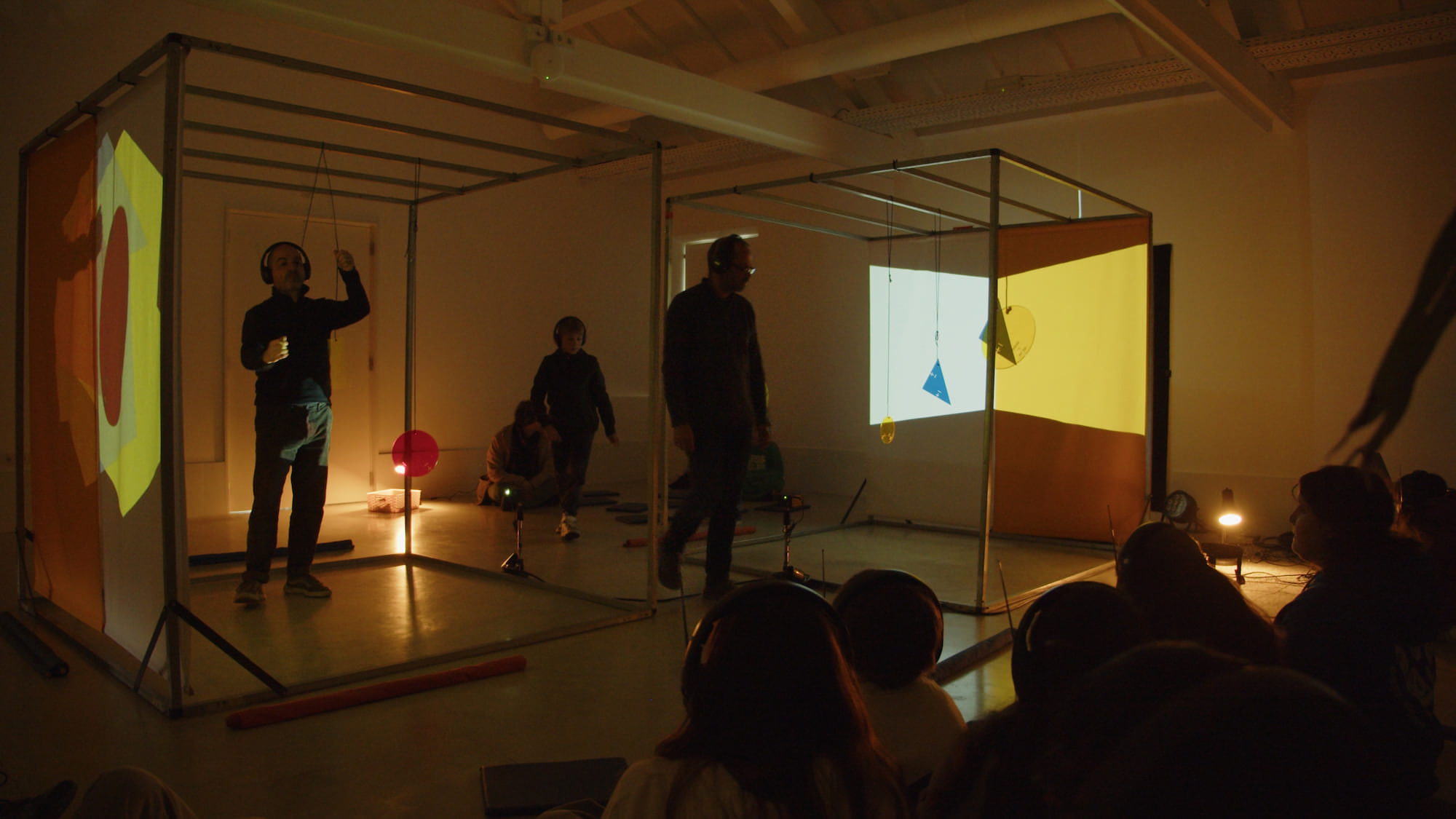 Um projeto que se situa entre o teatro e a oficina, um lugar experimental que procura explorar relações entre objetos sonoros e visuais.